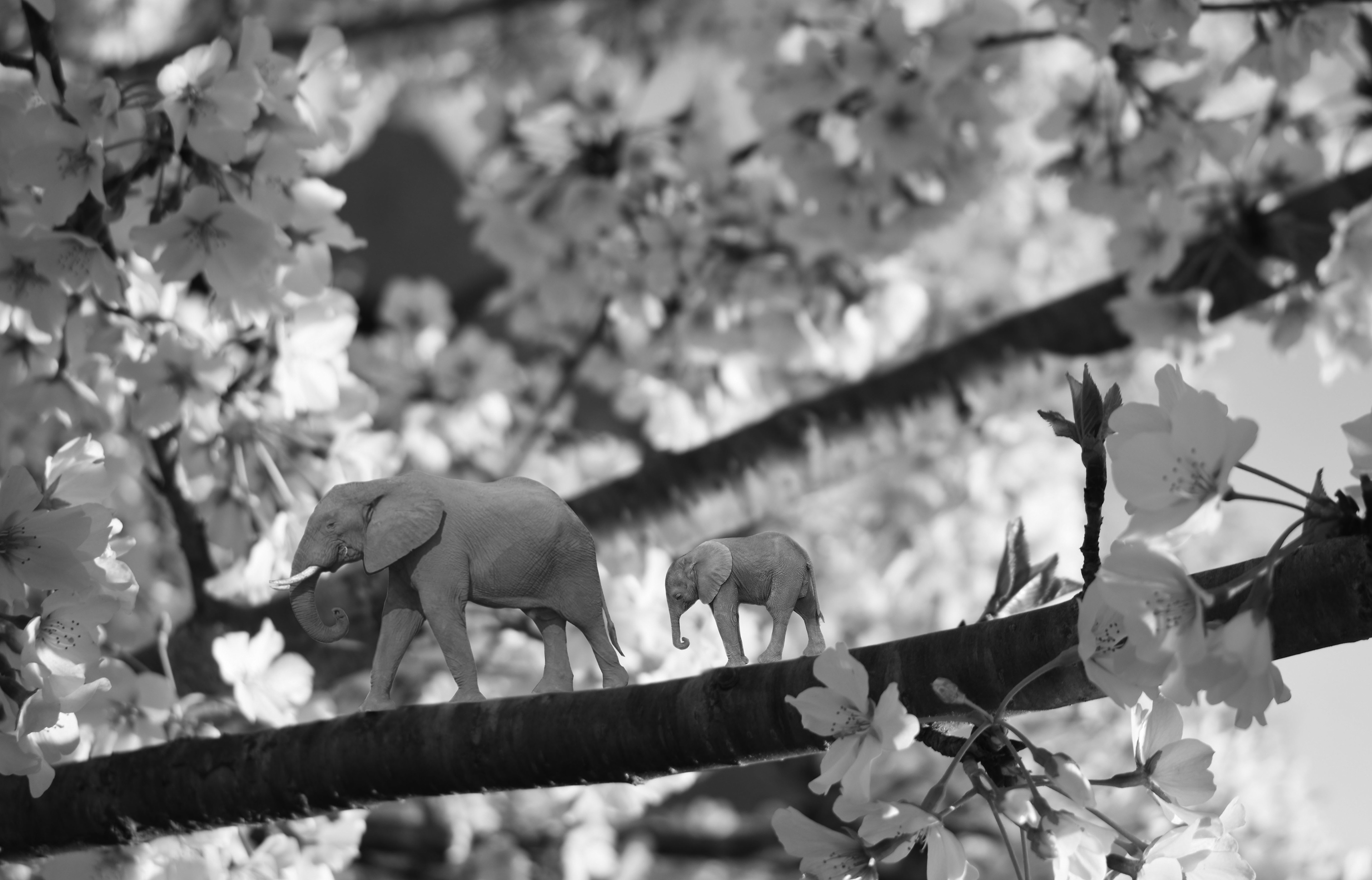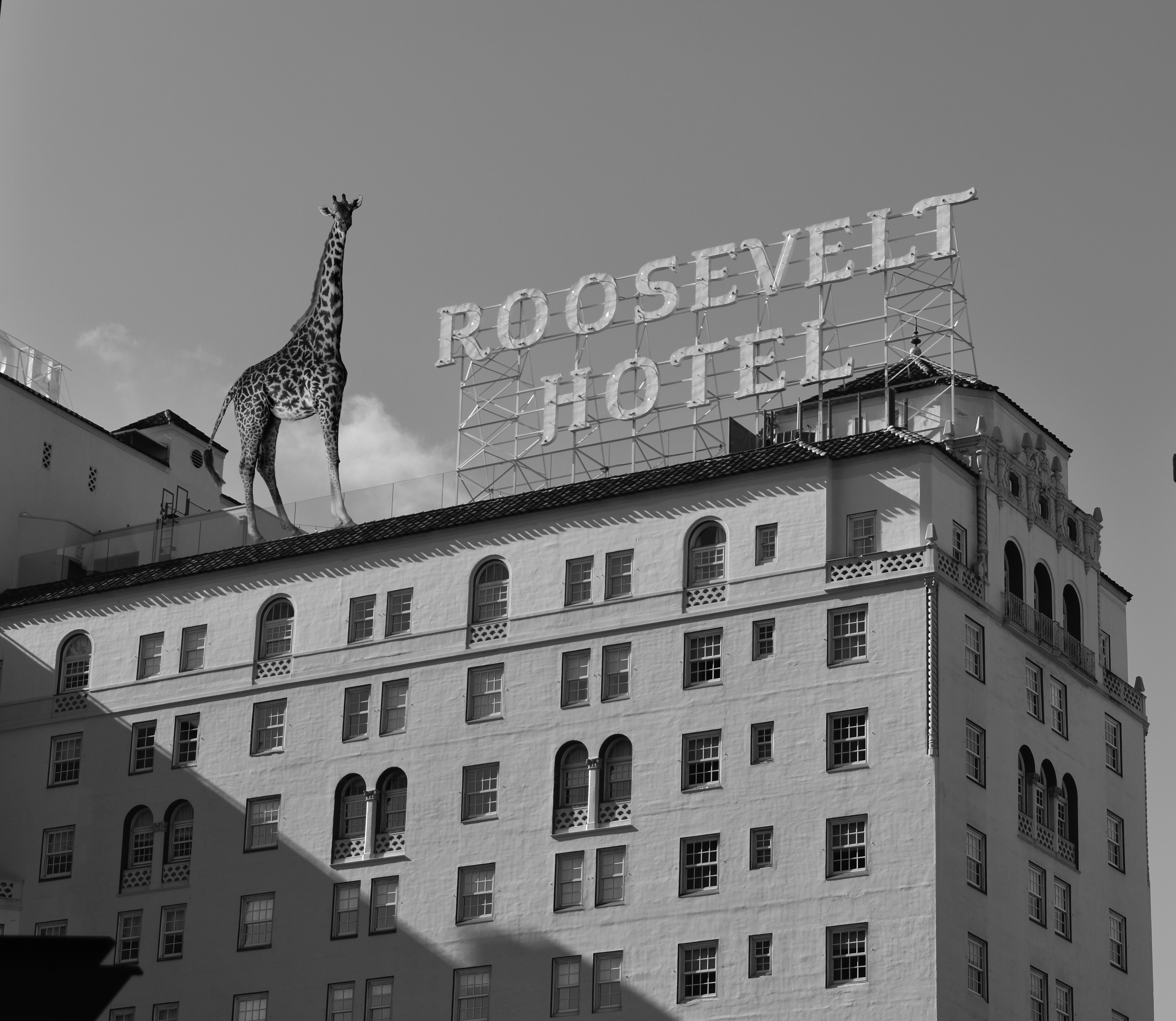 These are part of a light-hearted photo series I created named “Out of Habitat”. I wanted to explore the idea of placing animals out of context, in environments they aren't normally found. First, I went to the North Carolina Zoo for a day taking many pictures of the animals there. I then shot various locations. Finally, I used Photoshop to combine the images of the animals into their new environments. I wanted to explore a more lighthearted approach to photography, creating something ridiculous because of its impossibility. I put all of the photos in the series in black and white to unify them and emphasize the comical scene happening in the photos.