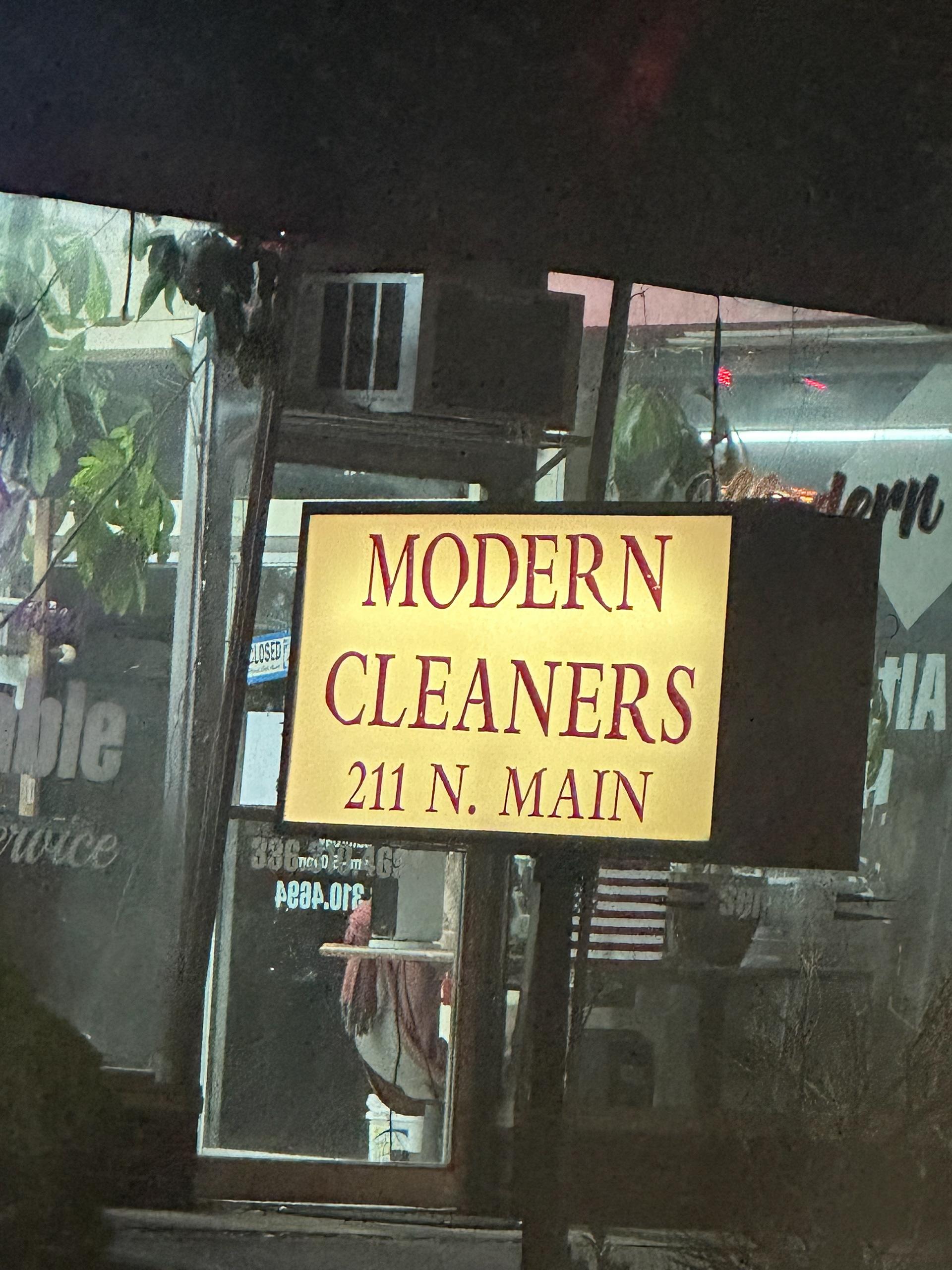 These are images of a sign for a dry cleaners and a hand-painted H on a banner. They are examples of lettering because they are made by hand but carefully planned and considered. During production they were allowed the possibility of correction and the ability to be reworked. The time of production and use exist separately. The letters in the first sign can moved around post-production. The letters in both signs are similar to writing because they are made using the body, the first sign is hand-cut and the second hand-painted. But they are different to written letters because they can be built up using numerous strokes.